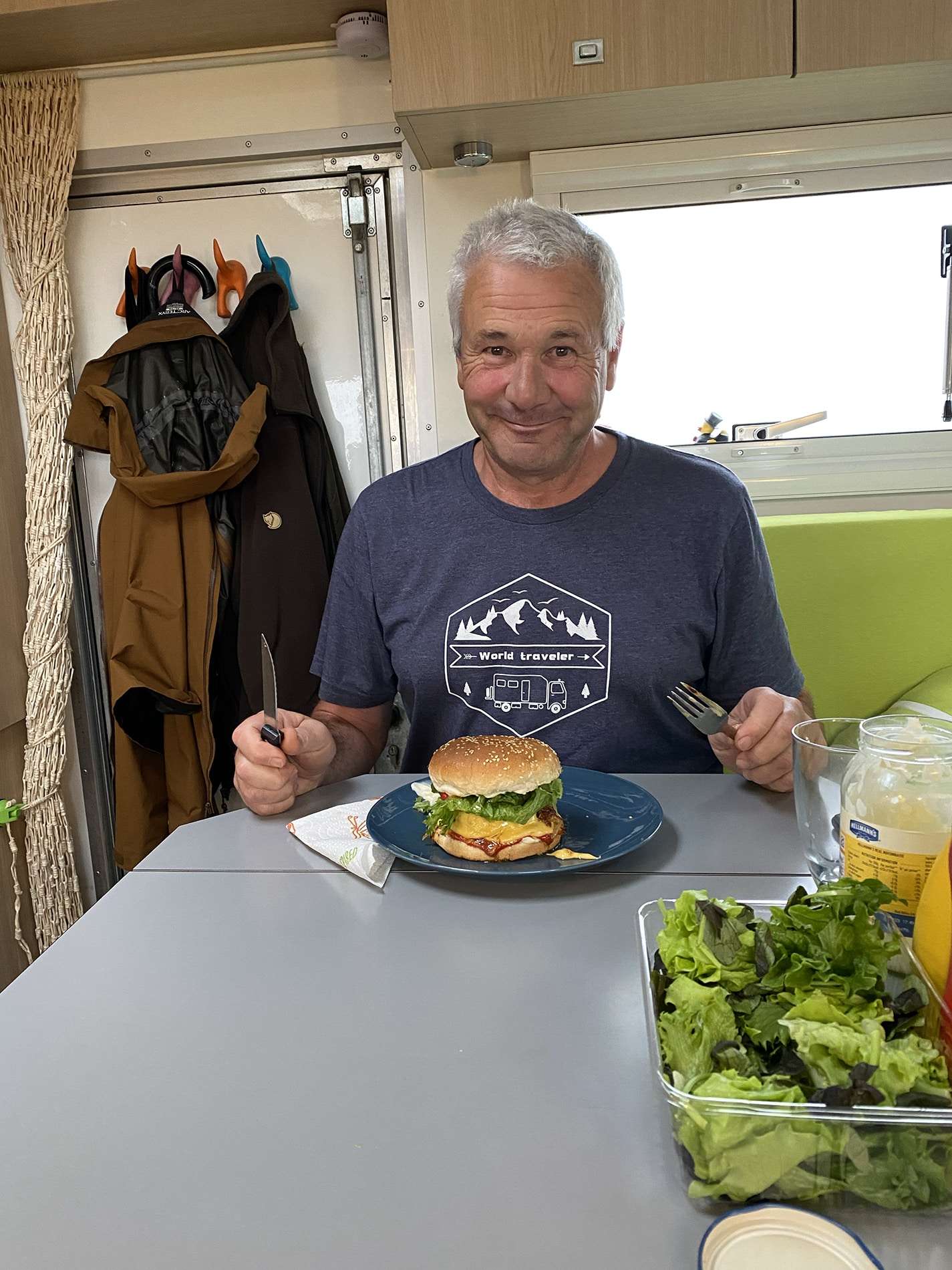 We start the day very early and at 7 o’clock the engine is already running, ready for departure. Same story as yesterday, banging, shaking, rattling and above all hoping that nothing breaks. It’s going slow, but we make it to the end of the F910 in one piece, phew. And for a change, towards evening the weather has changed considerably, wind and rain. Unfortunately, this was again predicted. Tomorrow we’ll see what it will bring us, the predictions are no reason to go out early.