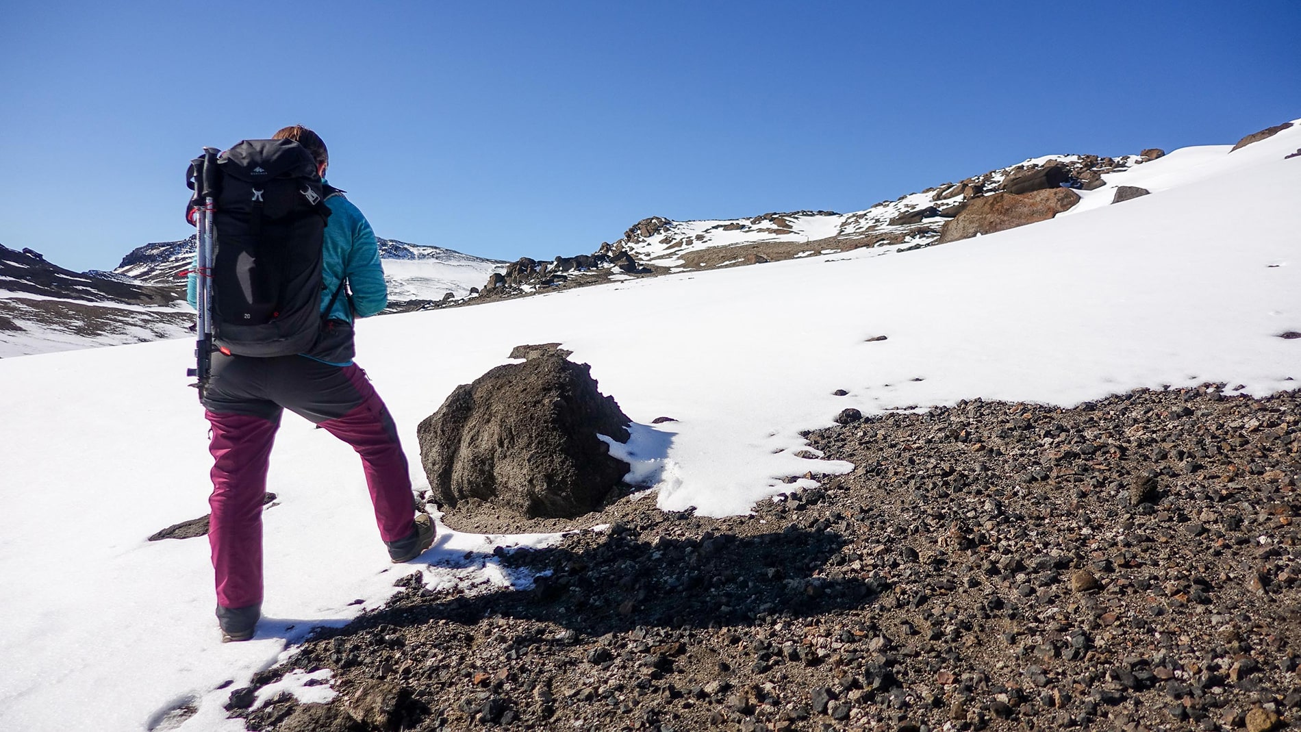 After a good night’s sleep, it is time to get up. The weather reports are right, steel blue sky, so SUN. We start on time, you should not let such beautiful weather pass. To describe the walk in short, STUNNING. Too bad about the snowfields so we can’t do the last kilometers to the crater, but it’s just great 12 kilometers with a good 1600 altimeters. This is where my batteries charge. Tomorrow we will continue because parking at 36 Euro/Night is enough.