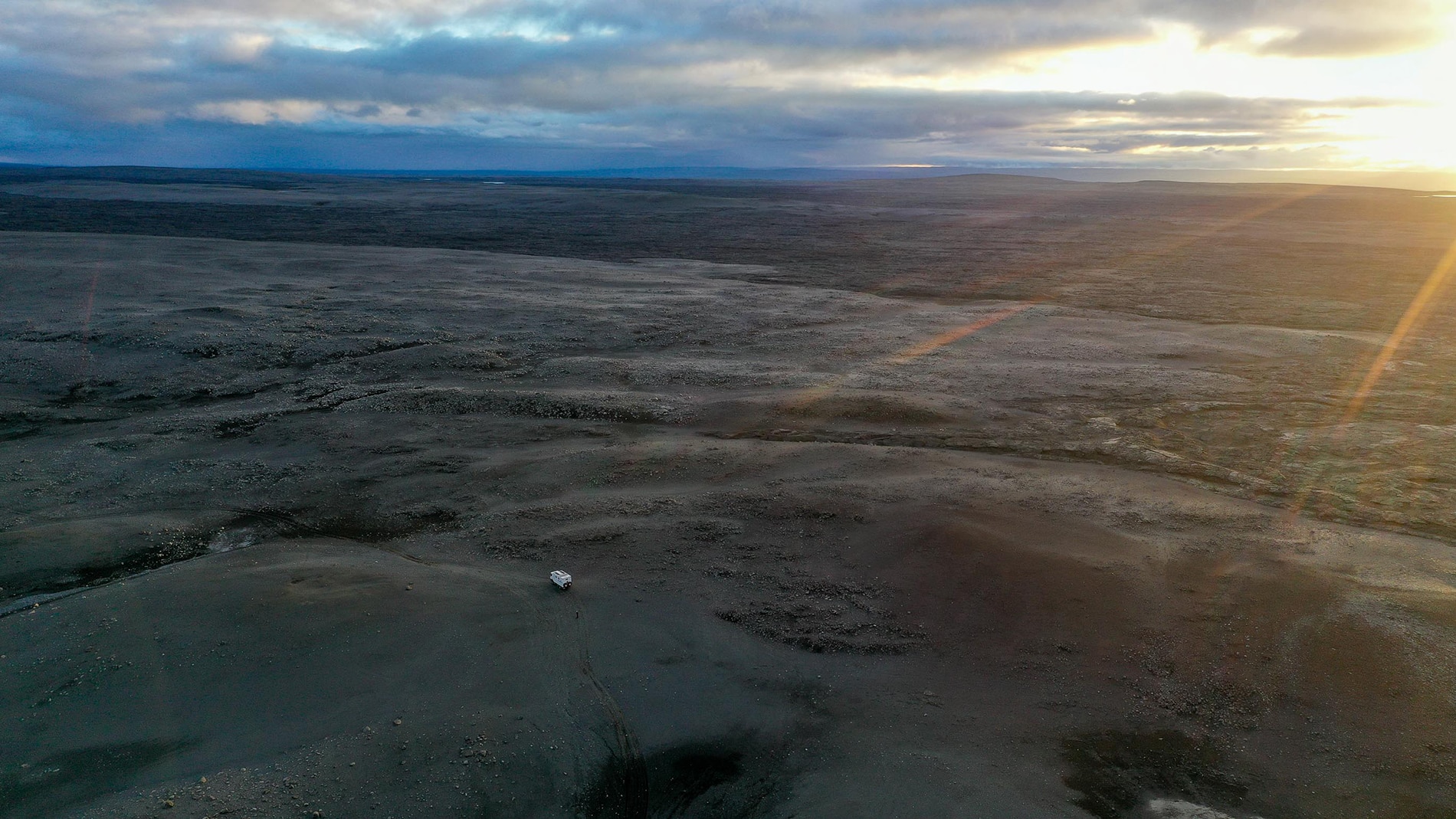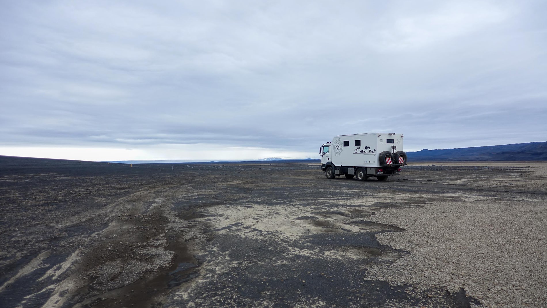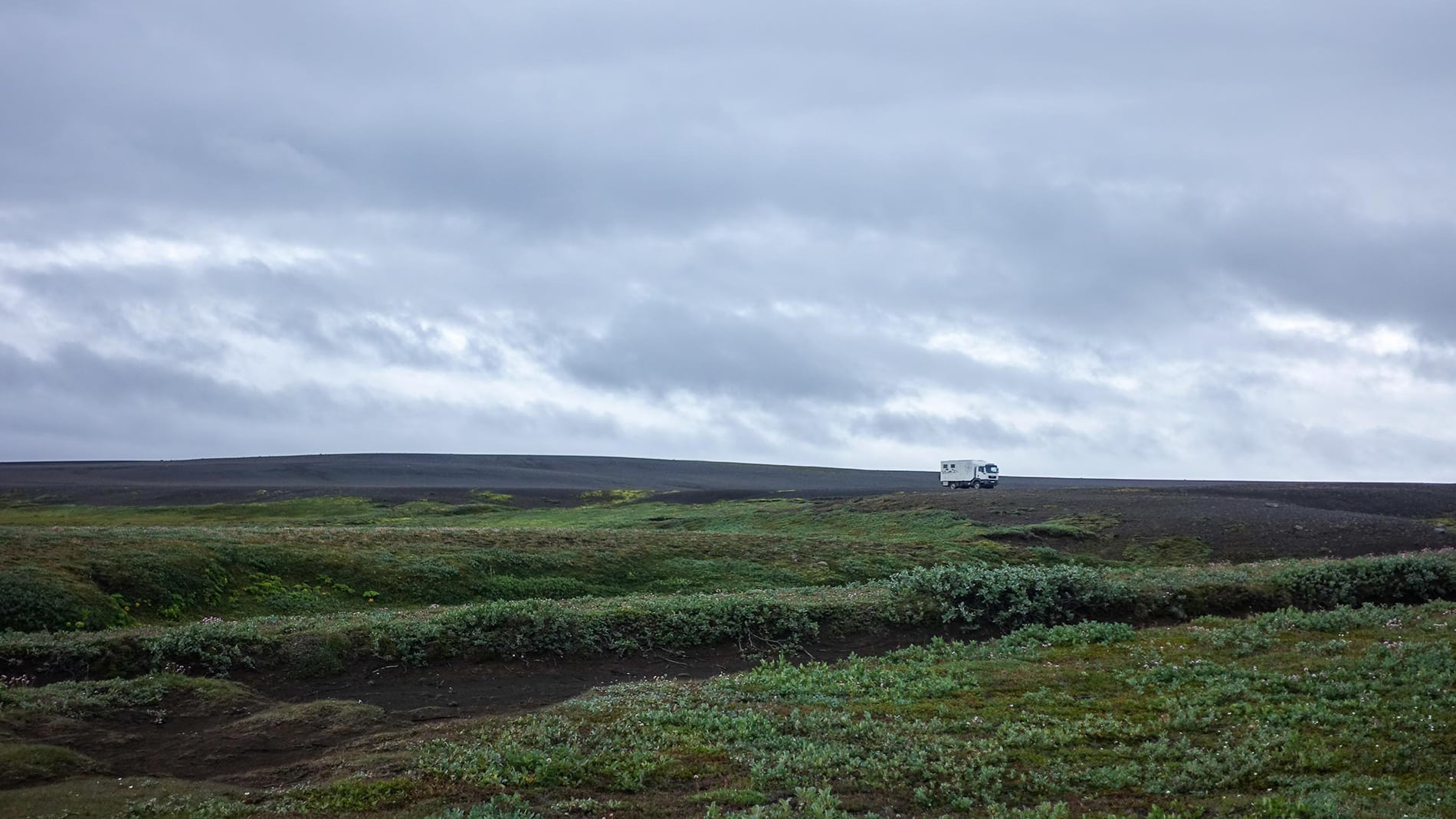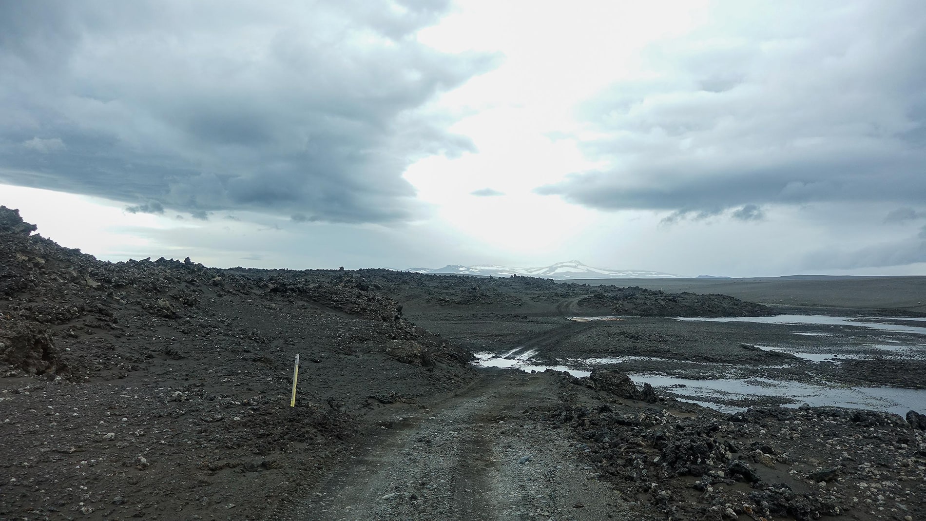 The next day starts as the previous one ended, wet, cold and windy. We follow the F910 further and once past the power station of the Jรถkla reservoir it really becomes F road driving. To keep it short, from the power station to Askja it’s 110 kilometers, which takes us more than 7 to 8 hours, shaking, rattling and shifting a lot. After dinner I crawl under the wool, I’m exhausted. Tomorrow we will stay for a day to walk to the crater of Askja. The weather reports already say that the weather will be beautiful.