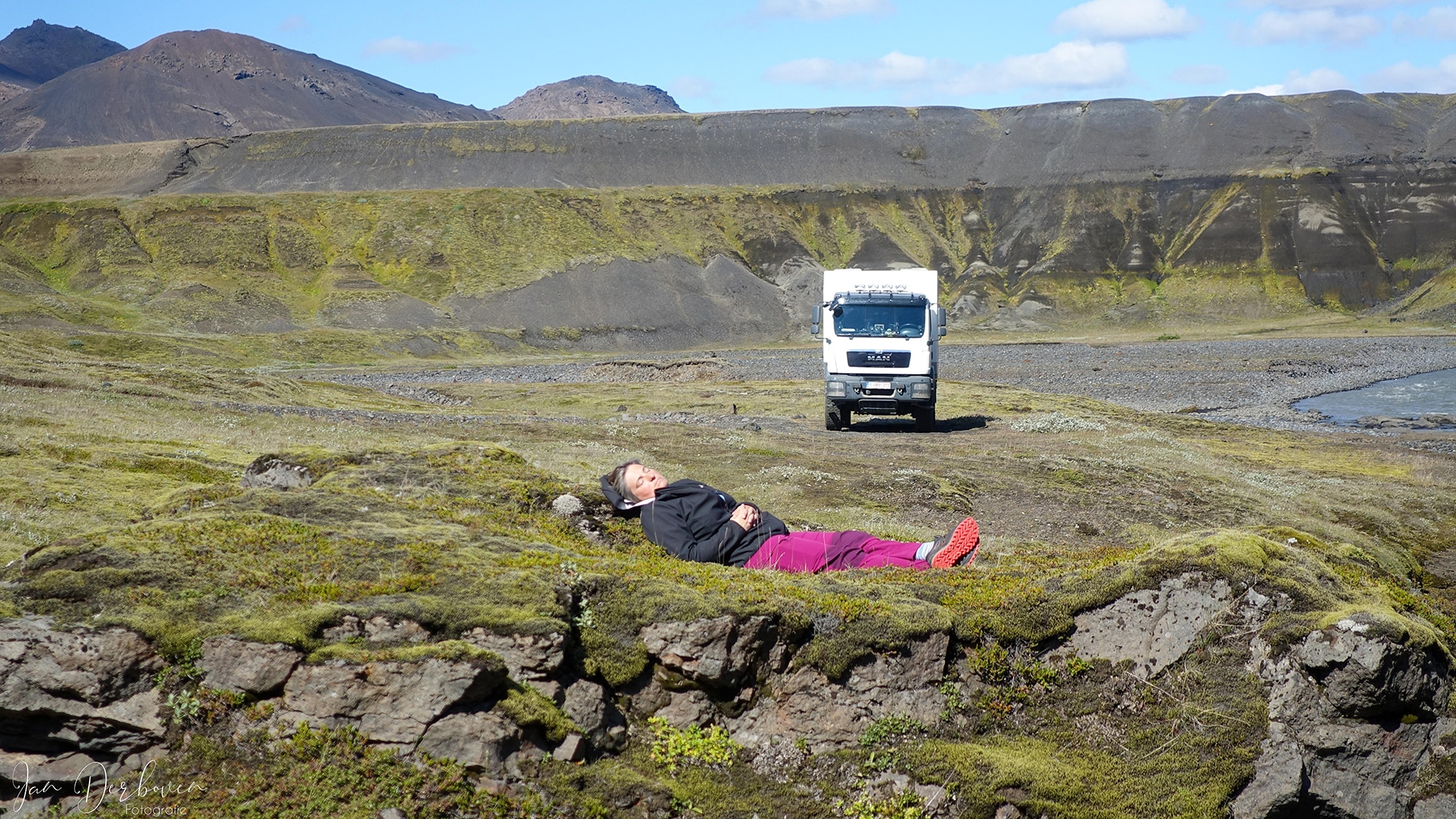 The rest of the day, with many stops, we continue our tour around the Myrdalsjökull glacier via F210 and then F261 to stop at the UNESCO-recognized Markarfljótsgljúfur gorge where we immediately spend the night and stay for a day. No, not because of the nice weather, that will be over tomorrow. Warnings have been sent out for tomorrow that a severe storm will pass in the southern part of Iceland. The weather forecasts are correct again, it is staying indoors. Bakkie stands with the head in the wind and that’s a good thing, the wind is shaking all day with accompanying rain. We make grateful use of this mandatory rest day to update the photo, film and website backlog a bit.