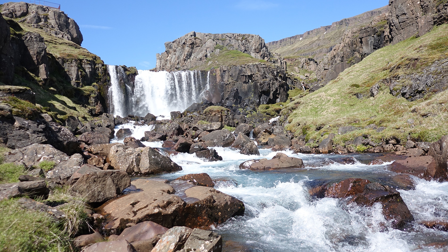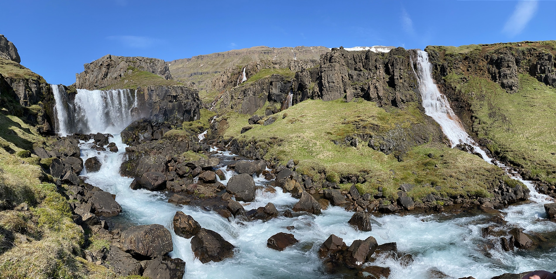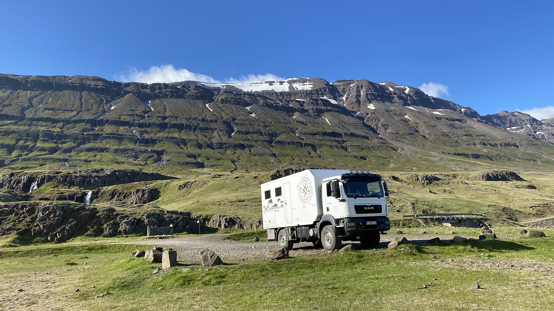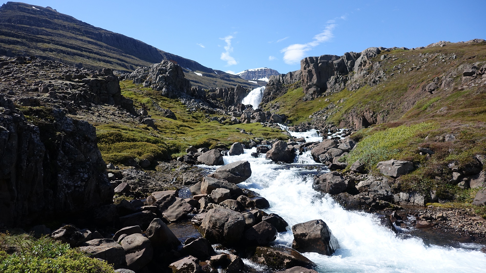The first days in Iceland are mainly rainy. Except for the day of arrival, beautiful weather. So we immediately looked for a very nice spot on the north side of the Seydisfjord to spend the first night. But before the night comes we have made a beautiful afternoon walk of 6 km. Not far but satisfying after being on the ferry for 2 days. On the hike it is basically from one waterfall to another. It’s just enjoying the sun, the environment and especially the freedom again