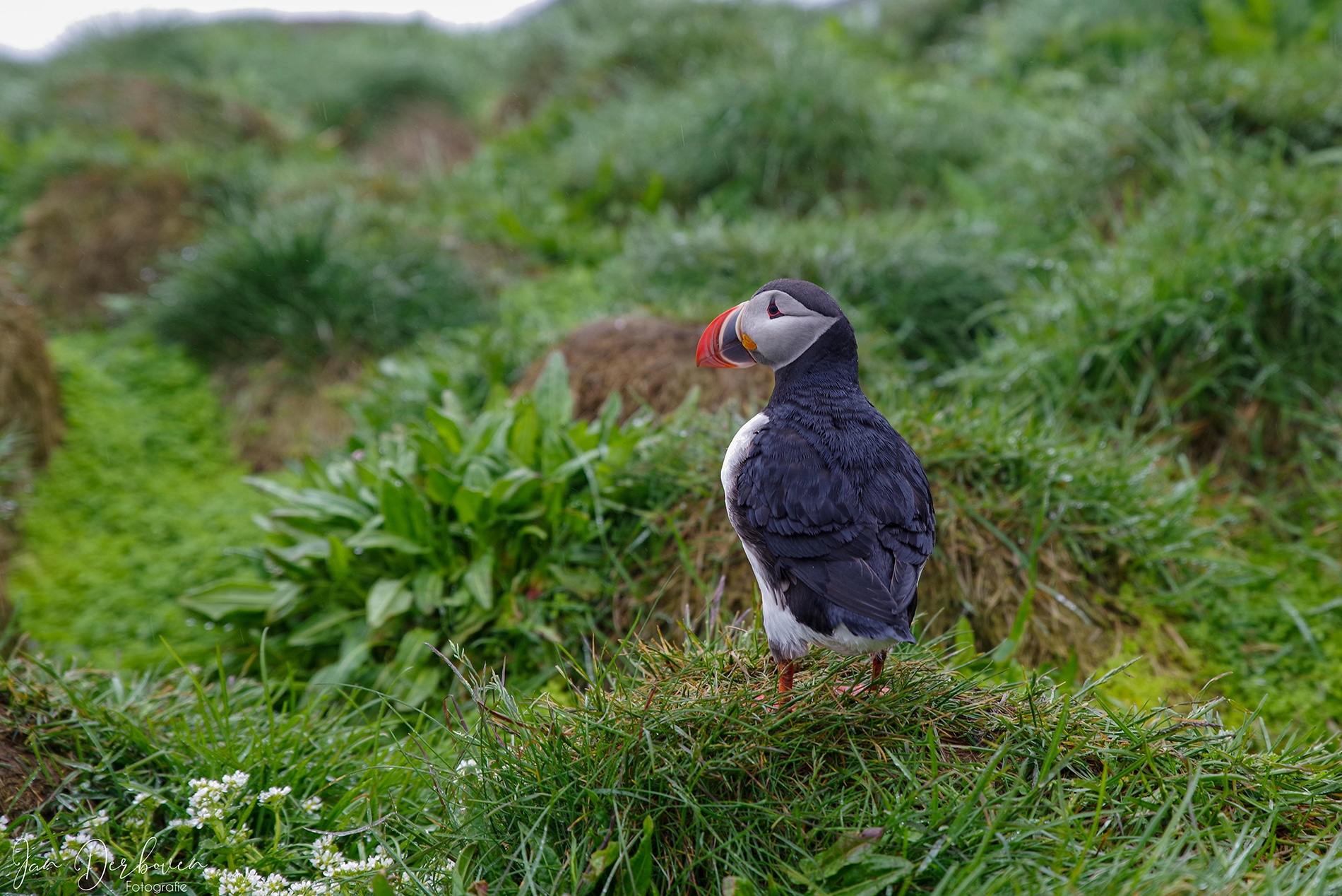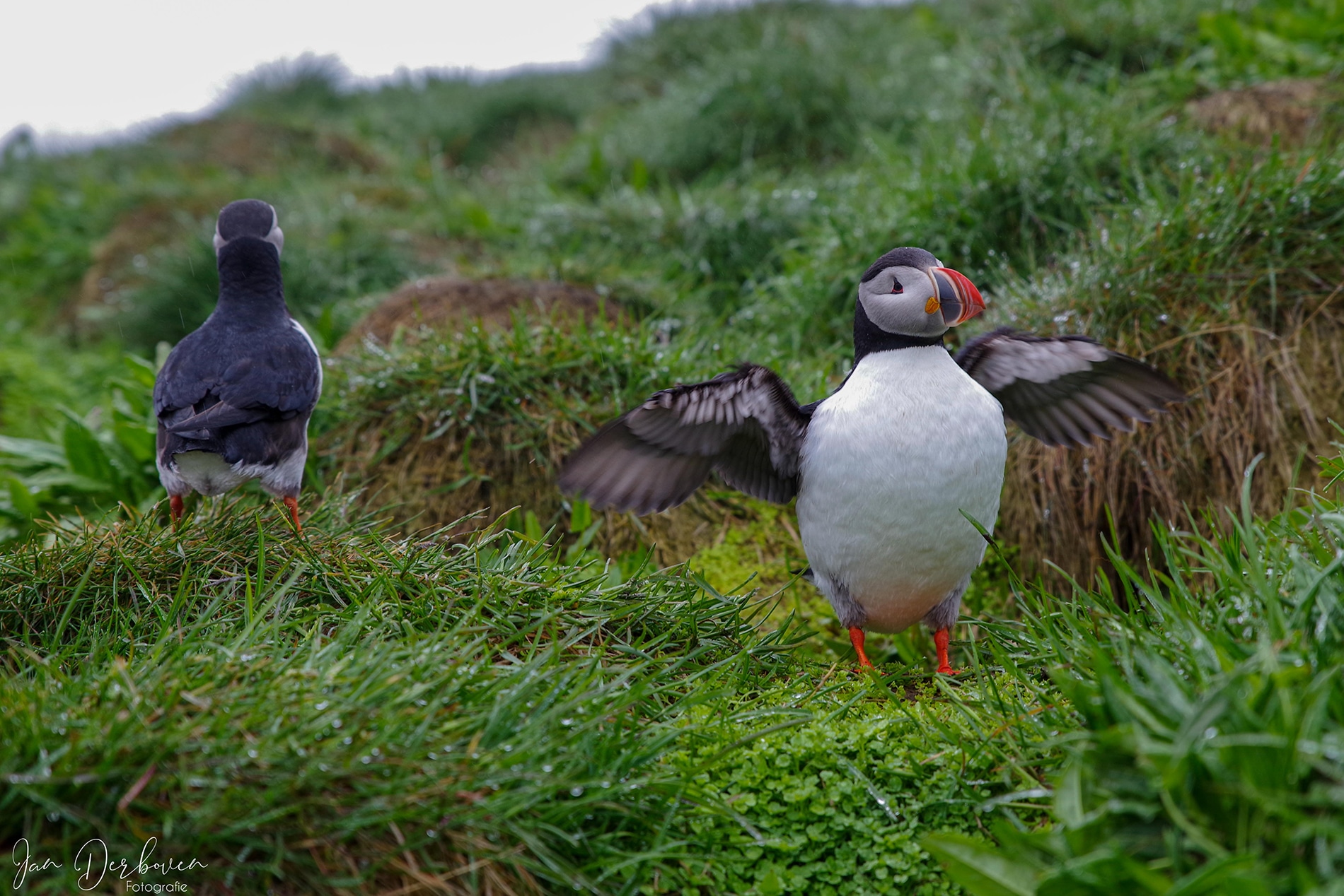 That evening it starts to rain, what we don’t know yet is that it will rain continuously for the next 2 days. Well, that can just happen. Standing still is not an option, simply because the locals might complain. That’s something we try to avoid. We drive to the Borgarfjord where puffins can be spotted on Hafnarholmi, a small rock. Yes, a small rock full of birds and of course the beloved puffins. a feast to see.