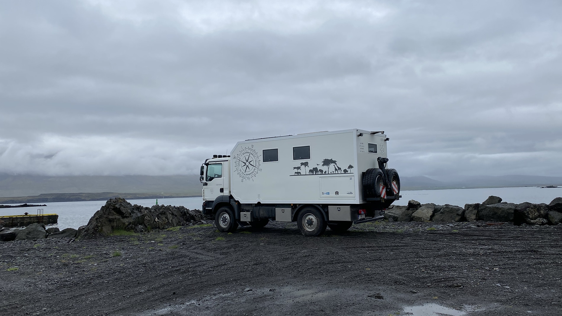 Let’s hope the rain will stop falling from the sky, 2 days has been enough. In this way we continue in a northerly direction. In Porshofn we go to take a look at the old plane wreck R4D-6, this is mainly used as a shelter for the cattle. pity We drive a little further to visit a bird hut, but after 5 km a sign max. 2 tons per axle, so turn around and drive back from where we came. Slightly disappointed. Sudden warning on dashboard, rear lock is engaged. No, no no, the lock has not been switched on, during an inspection it appears that the control contact of the rear lock has been broken. Damage on day 4, not good.