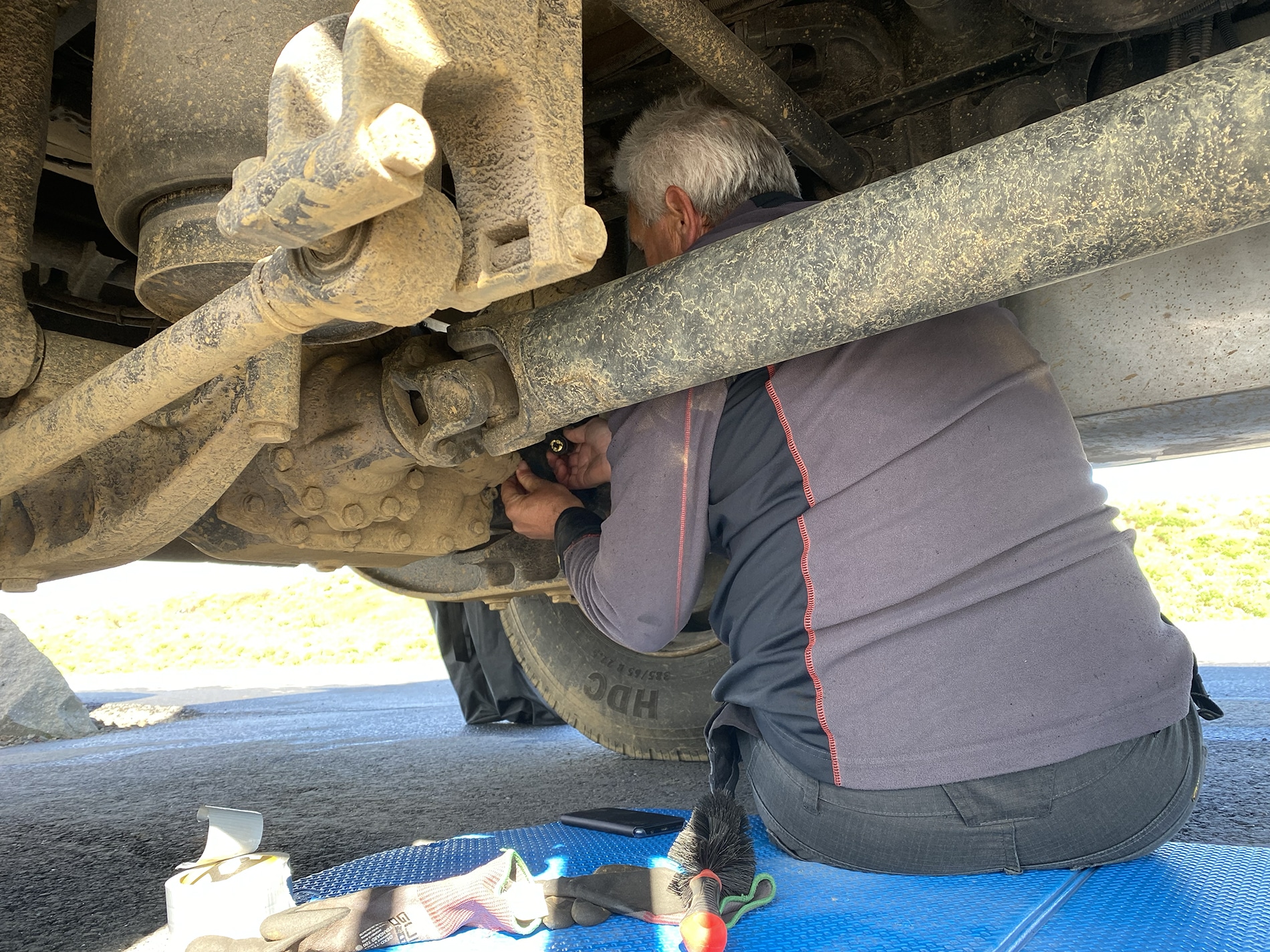After several messages from fellow travelers and an email from the garage, one thing is clear. We can keep driving. I tape everything well and hang the broken plug up to avoid false warnings on the dashboard.