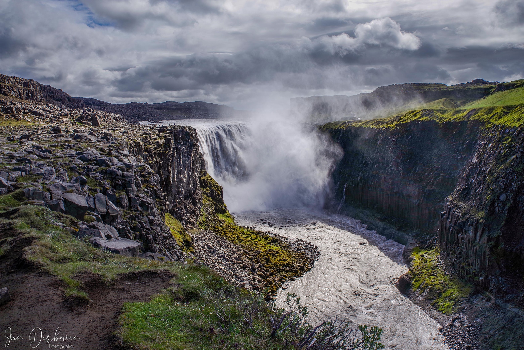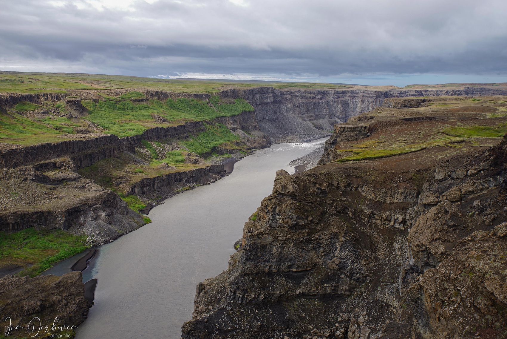 The day starts rainy and we decide to continue our route a little further towards Dettifoss, the first waterfall is Hafragilsfoss. We wait there until it stops raining. At 5 pm we give up, it rains and continues to rain. Just return to our sleeping place from last night. It rains all night with a temperature of 4°c. We wait the next day to continue until it dries up, according to the weather reports around 2 pm. It’s 12 noon when it finally dries up and even clears up a bit. In the course of the afternoon the weather is exactly as we like it, sunny. We go for a walk at Hafragilsfoss, Dettifoss and Selfoss, three large waterfalls that the river Jokulsa a Fjollum brings from the glacier Vatnajokul to the sea
