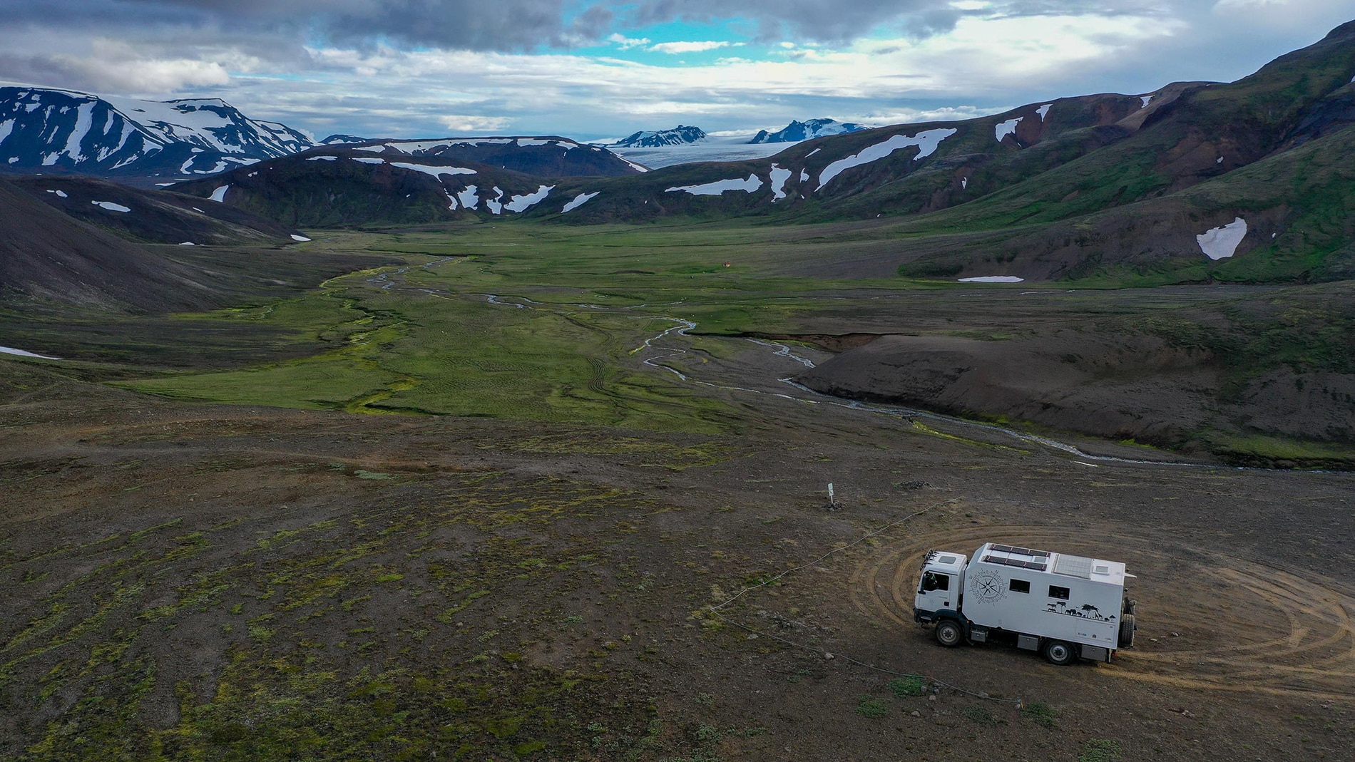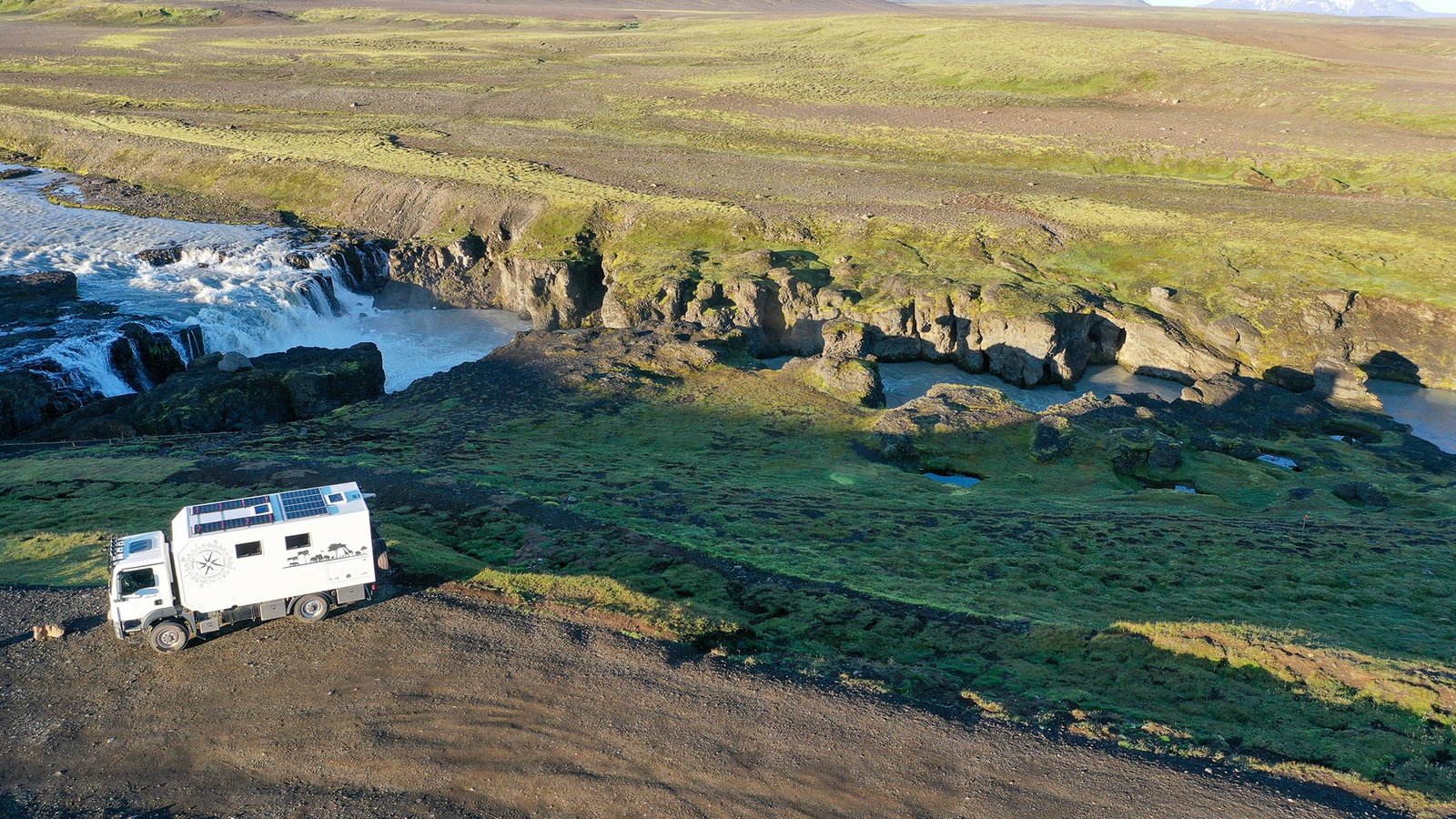 That night we are somewhere on a side road of the F338 at a Glacier river delta, Splendid. After the F338 we arrive at the 35, no more F road but certainly also beautiful, so we go to the Icelandic highlands area. We take the F336 as an up and down road to take a walk to the Longjuffel glacier. We spend the night at a small parking lot near Gygjarfoss along the F347.