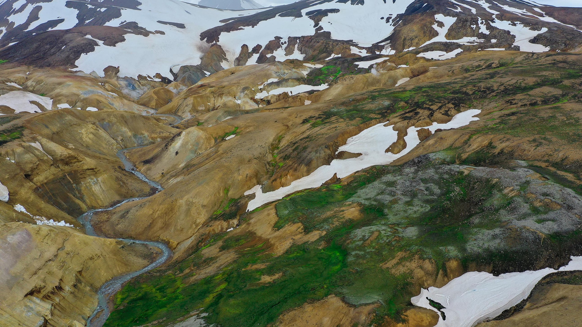 The next day it is early morning. We drive another 12 kilometers on the F337 to the geothermal area of Hveradalir. We take a walk of 4 hours here, what a beautiful valley. Splendid. We decide to drive a little further to Hveravellir. Once there I decide to look for a place to sleep on the F735, I thought we’ll find something. Not so. Fortunately, there is a parking/turning point at the end of the F735. It is a sporty ride, but 10 kilometers and 1.5 hours later we arrive at the parking/turning point and there we stop We will stay here for a day, what a magically beautiful place.