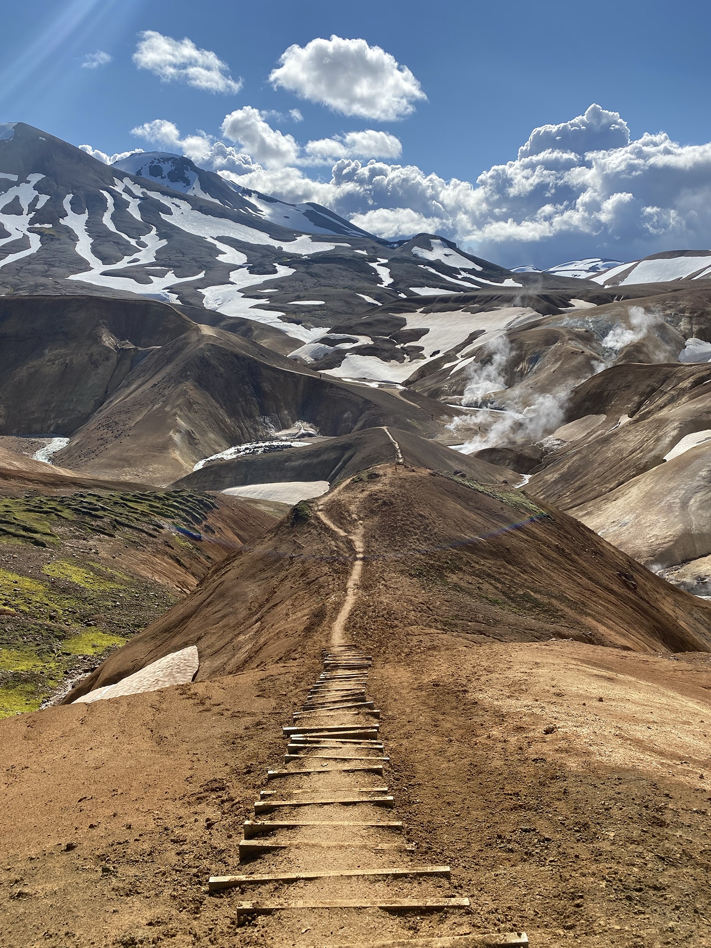 The weather forecast is correct, that sun does us good right away. We leave in time to drive into the Maelifellsdal and are immediately overwhelmed by its beauty. After about 10 kilometers there is a hike. Arriving at the small parking lot for the walk we see a line of defenders arriving, it is the group of Desert Fox. A quick chat and everyone goes their own way. The Desert Fox group continues out of the valley, we walk up the mountain towards Maelifellshnjukur. Lovely little very steep walk which we feel in our legs for the rest of the day.